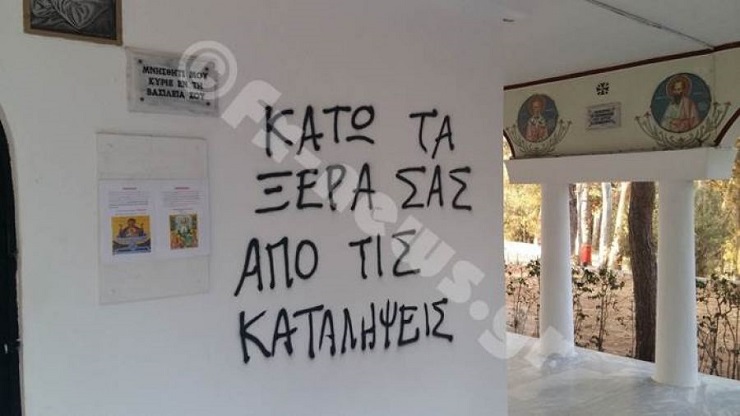 Eλεεινά συνθήματα στο εκκλησάκι της Ζωοδόχου Πηγής στο Άλσος Ν. Φιλαδέλφειας Eλεεινά συνθήματα στο εκκλησάκι της Ζωοδόχου Πηγής στο Άλσος Ν. Φιλαδέλφειας