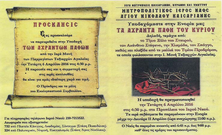 Τα Άχραντα Πάθη του Κυρίου στον Ιερό Ναό Αγίου Νικολάου Καισαριανής