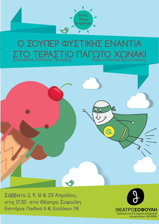 theater-sofouli-fistikis-pagoto Το παιδικό θεατρικό έργο «Ο Σούπερ Φιστίκης Ενάντια στο Τεράστιο Παγωτό Χωνάκι» του Γιάννη Κατσιγιάννη στο Θέατρο Σοφούλη